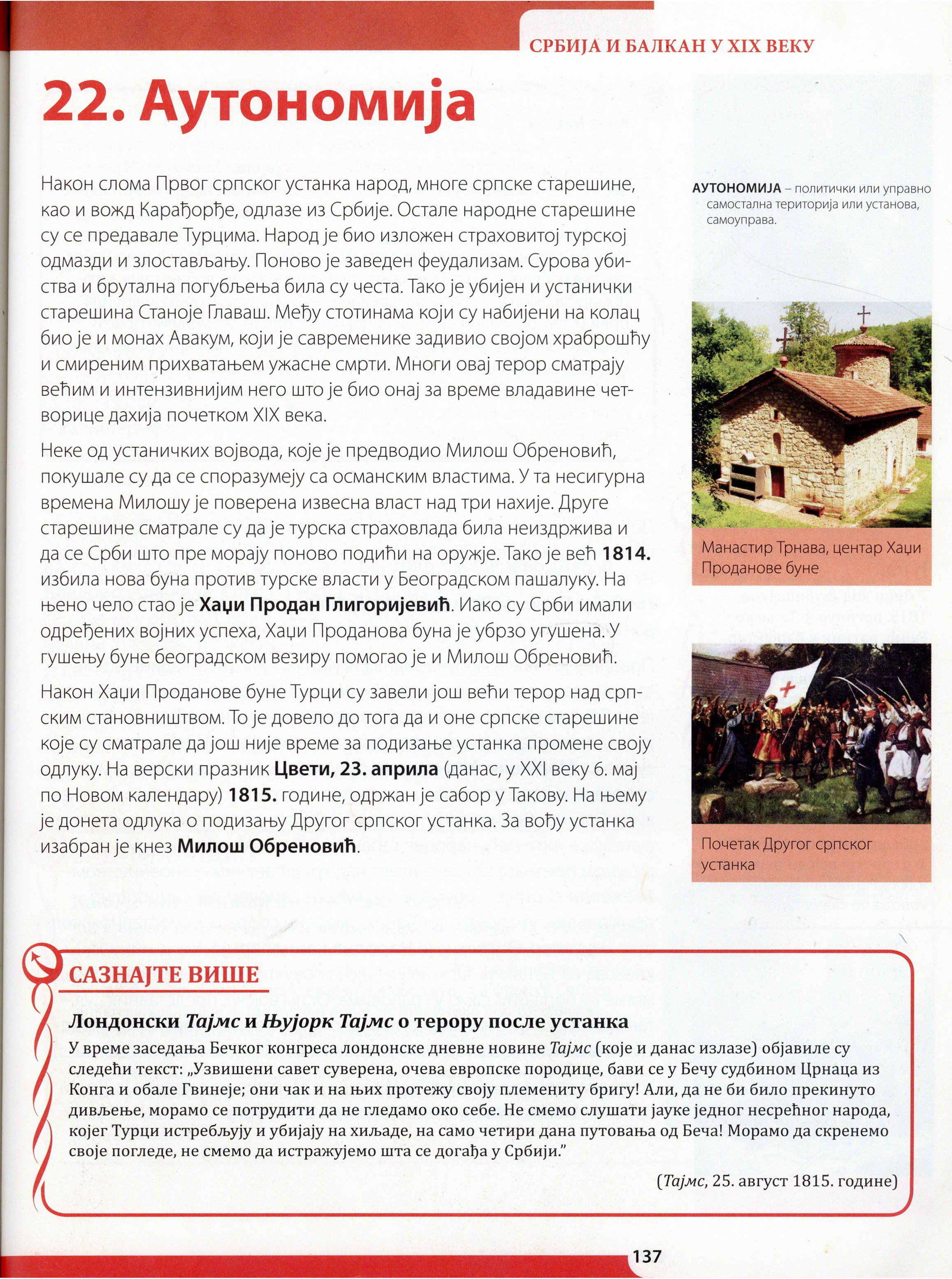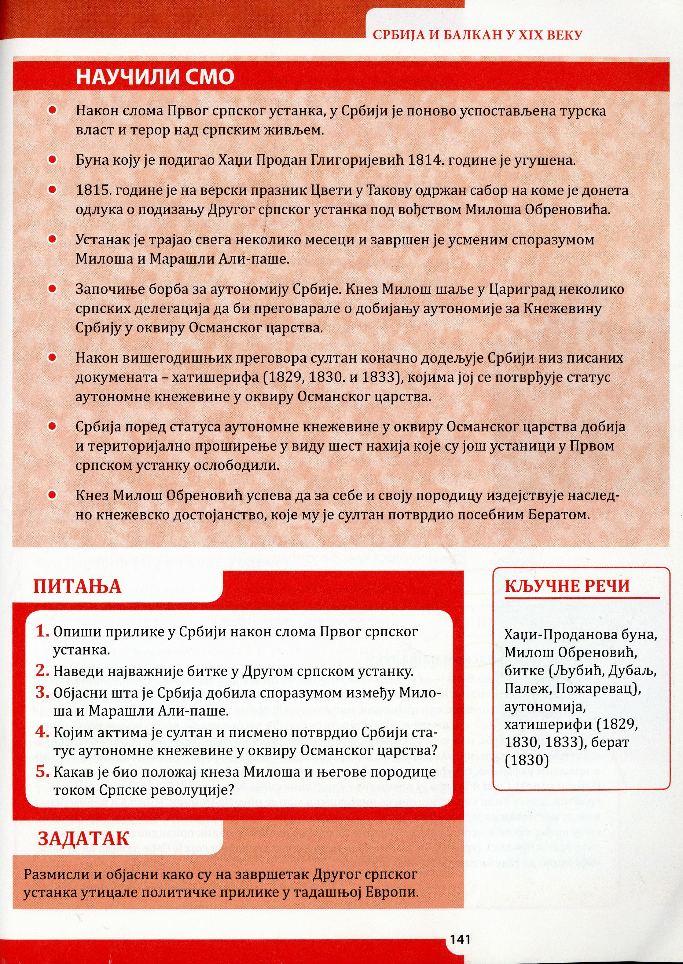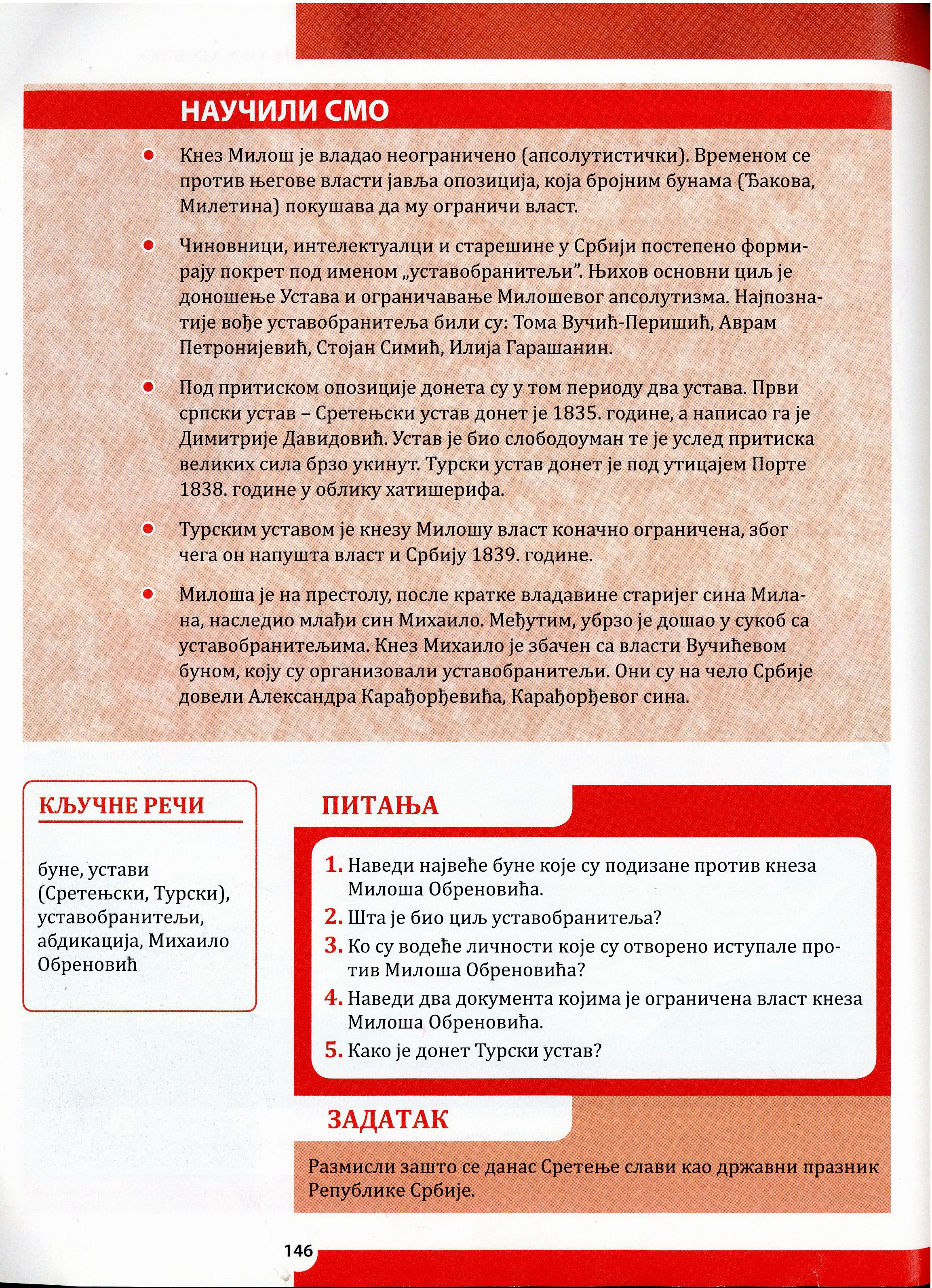 Ученици су радили тест знања о Другом српском устанку и првој владавини Милоша Обреновића.